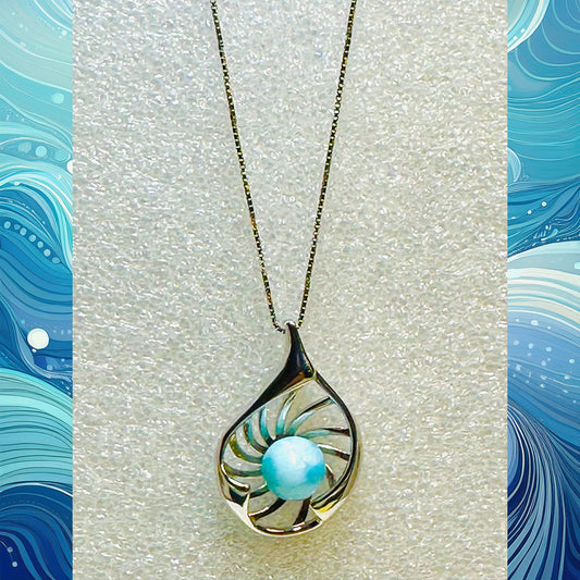 Larimar Sphere Seashell Pendant