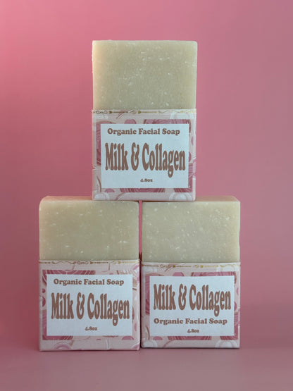 Handcrafted by master artisans, our Milk & Collagen organic soap contains coconut oil, soybean oil, and organic shea butter, along with olive pomace oil and sunflower oil for a rejuvenating home spa experience. With added collagen, this soap is perfect for a daily skincare routine that will leave your skin feeling nourished and refreshed.